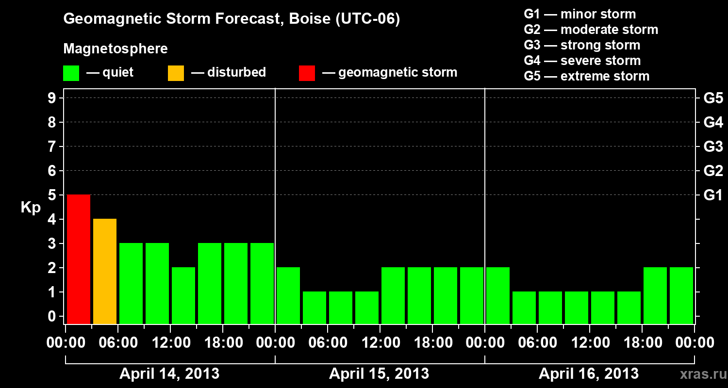 Geomagnetic storm forecast in Boise for Apr 14, 2013