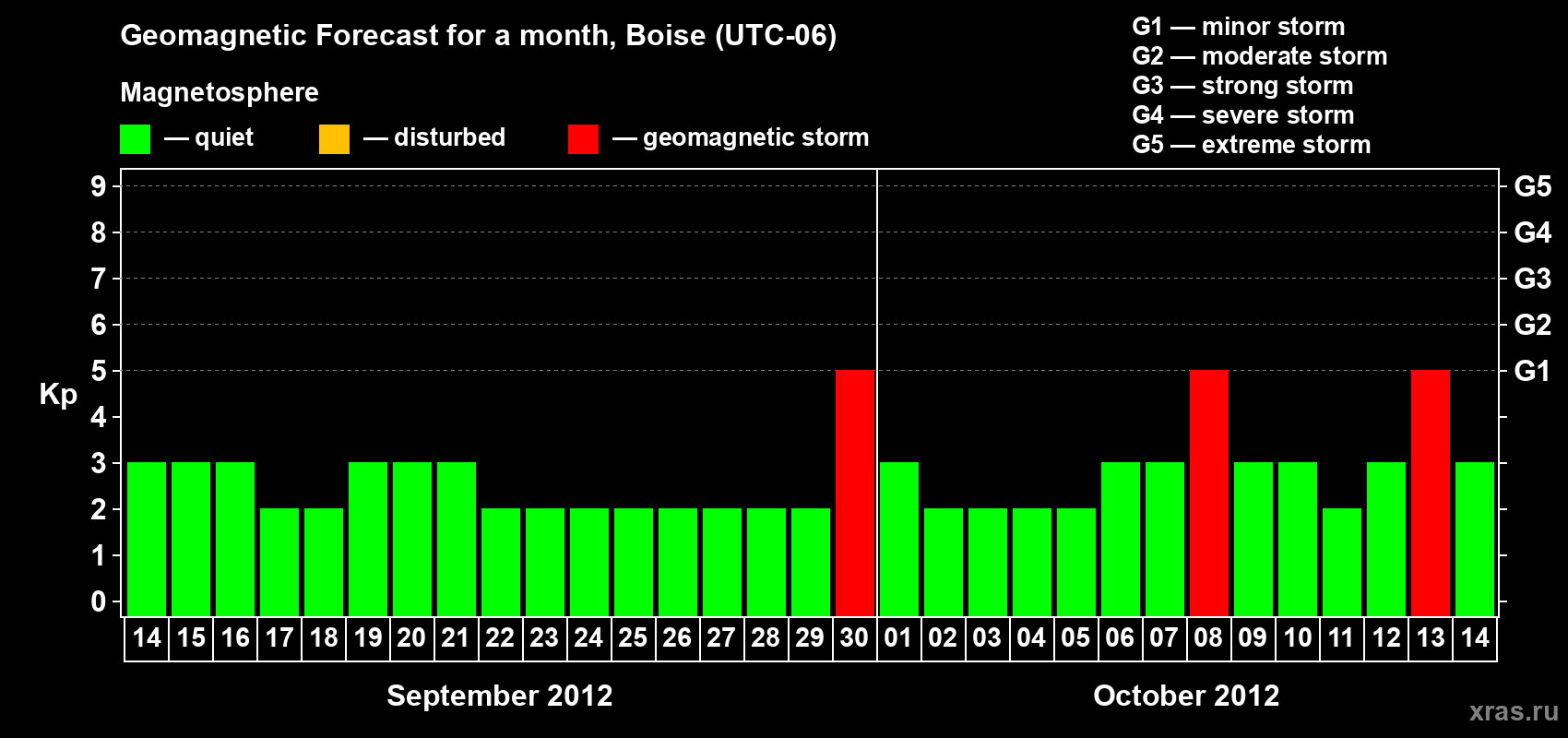 Geomagnetic storm forecast in Boise for Sep 14, 2012