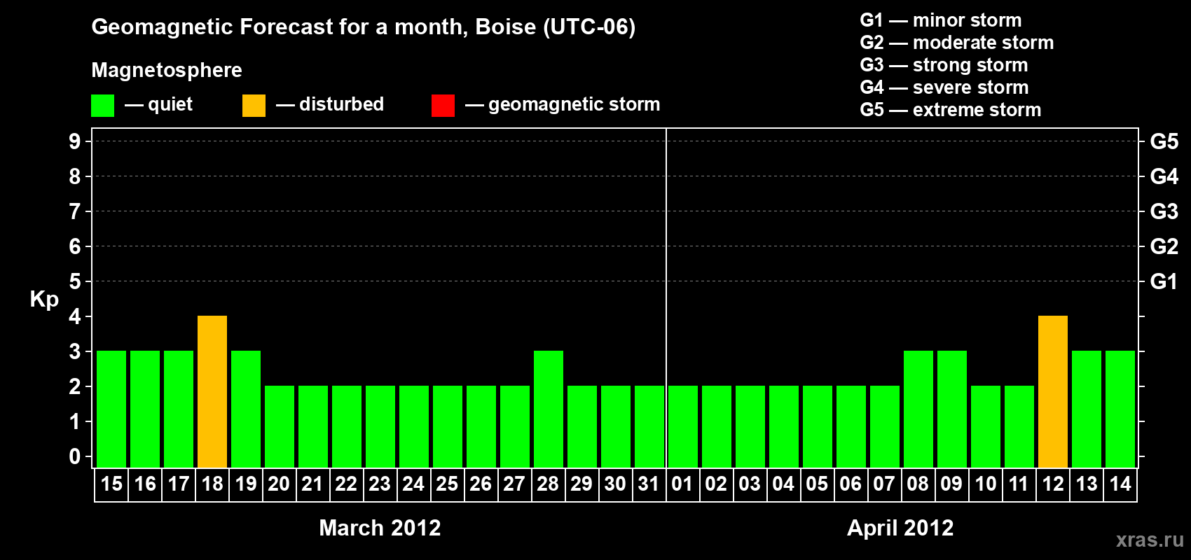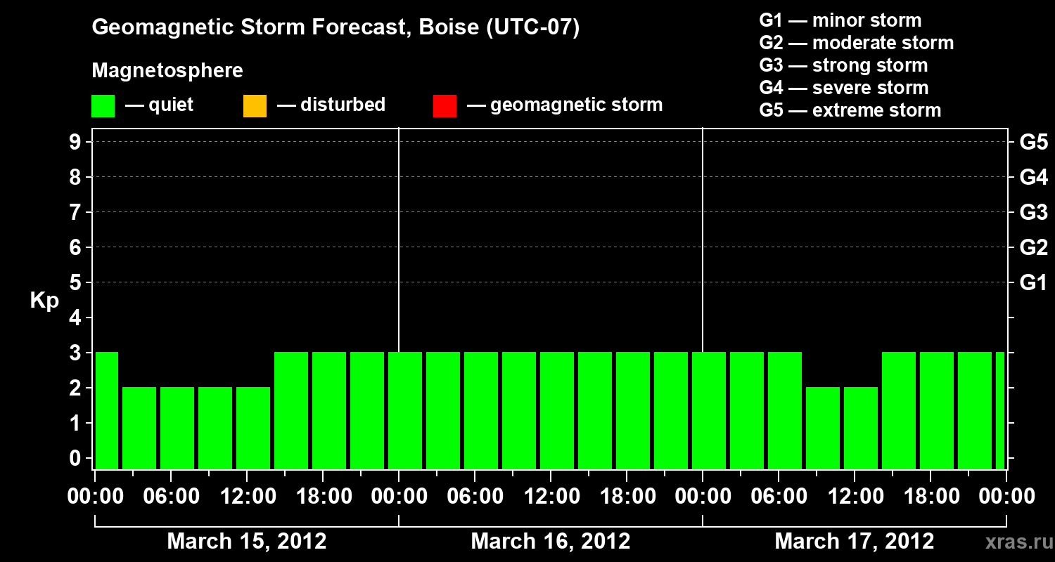 Geomagnetic storm forecast in Boise for Mar 15, 2012