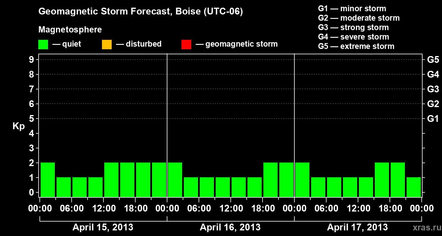 Geomagnetic storm forecast in Boise for Apr 15, 2013