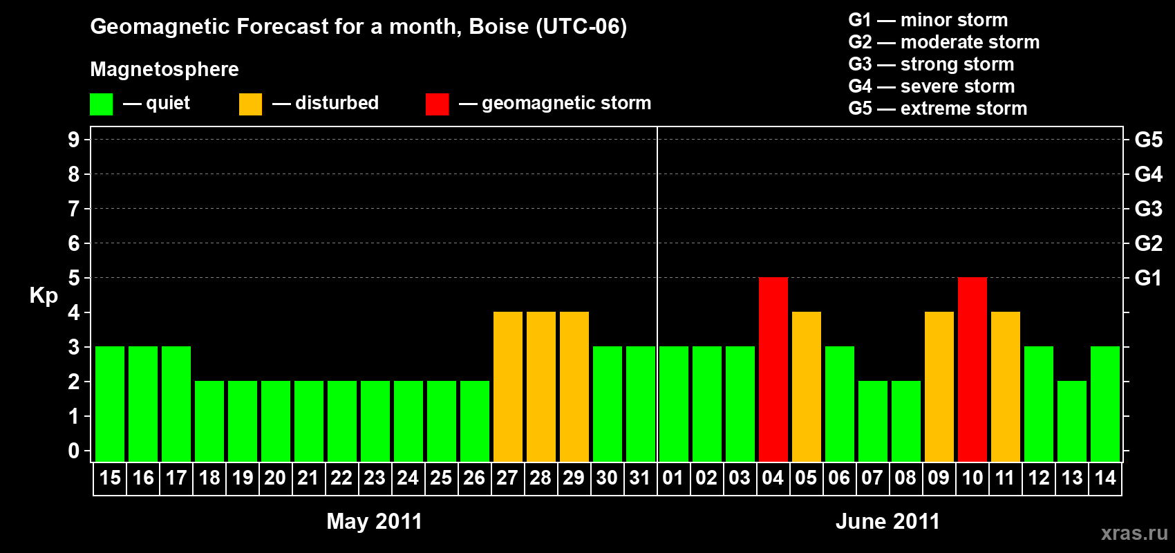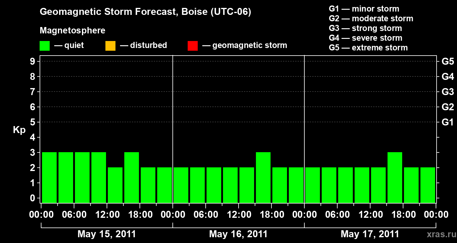 Geomagnetic storm forecast in Boise for May 15, 2011