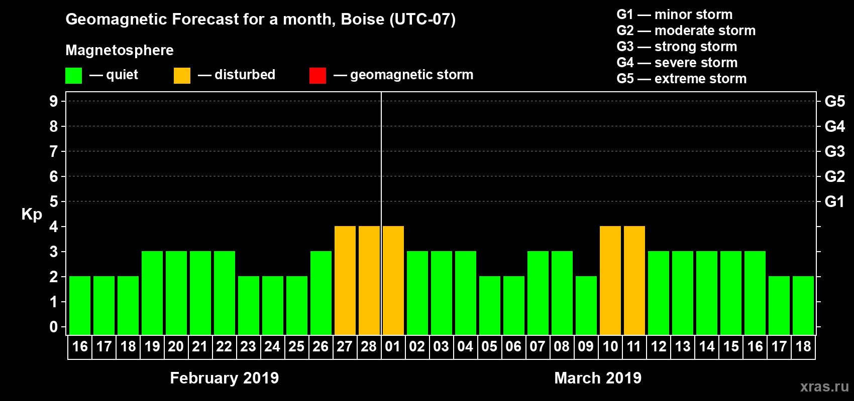 Geomagnetic storm forecast in Boise for Feb 16, 2019