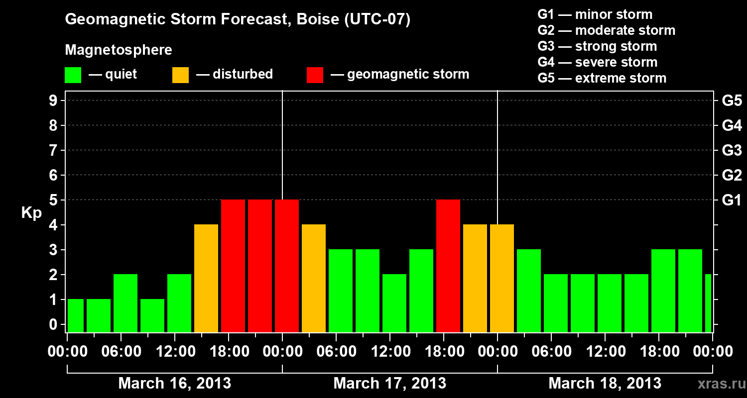 Geomagnetic storm forecast in Boise for Mar 16, 2013