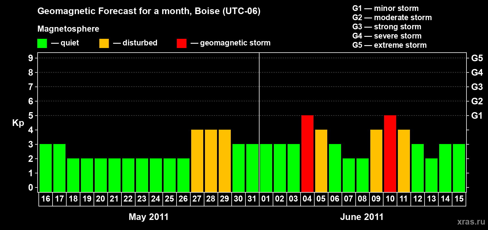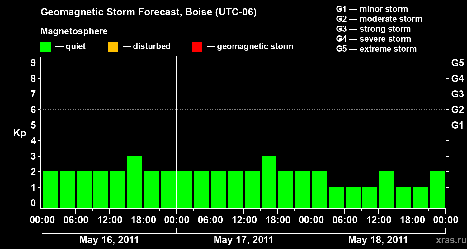 Geomagnetic storm forecast in Boise for May 16, 2011