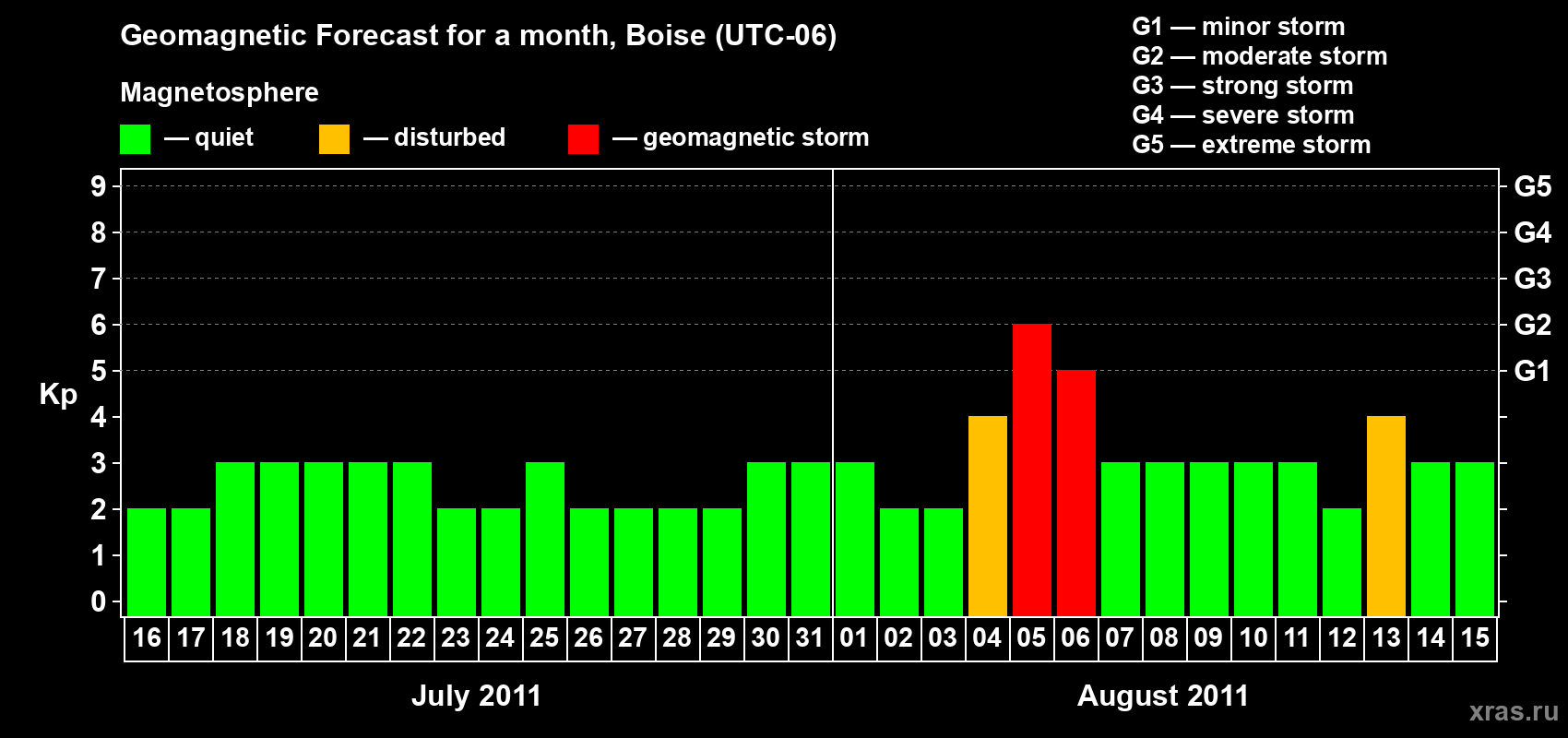 Geomagnetic storm forecast in Boise for Jul 16, 2011