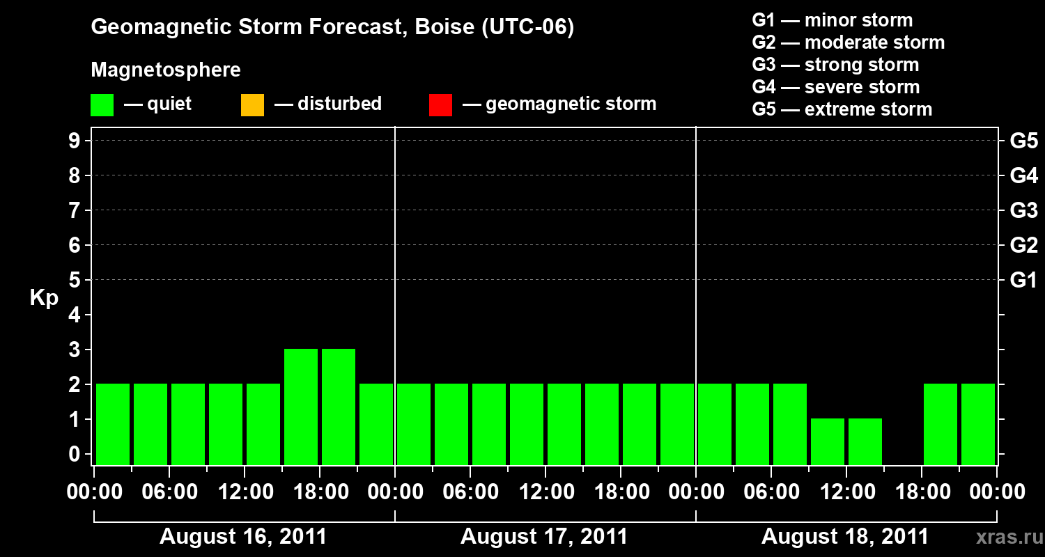 Geomagnetic storm forecast in Boise for Aug 16, 2011