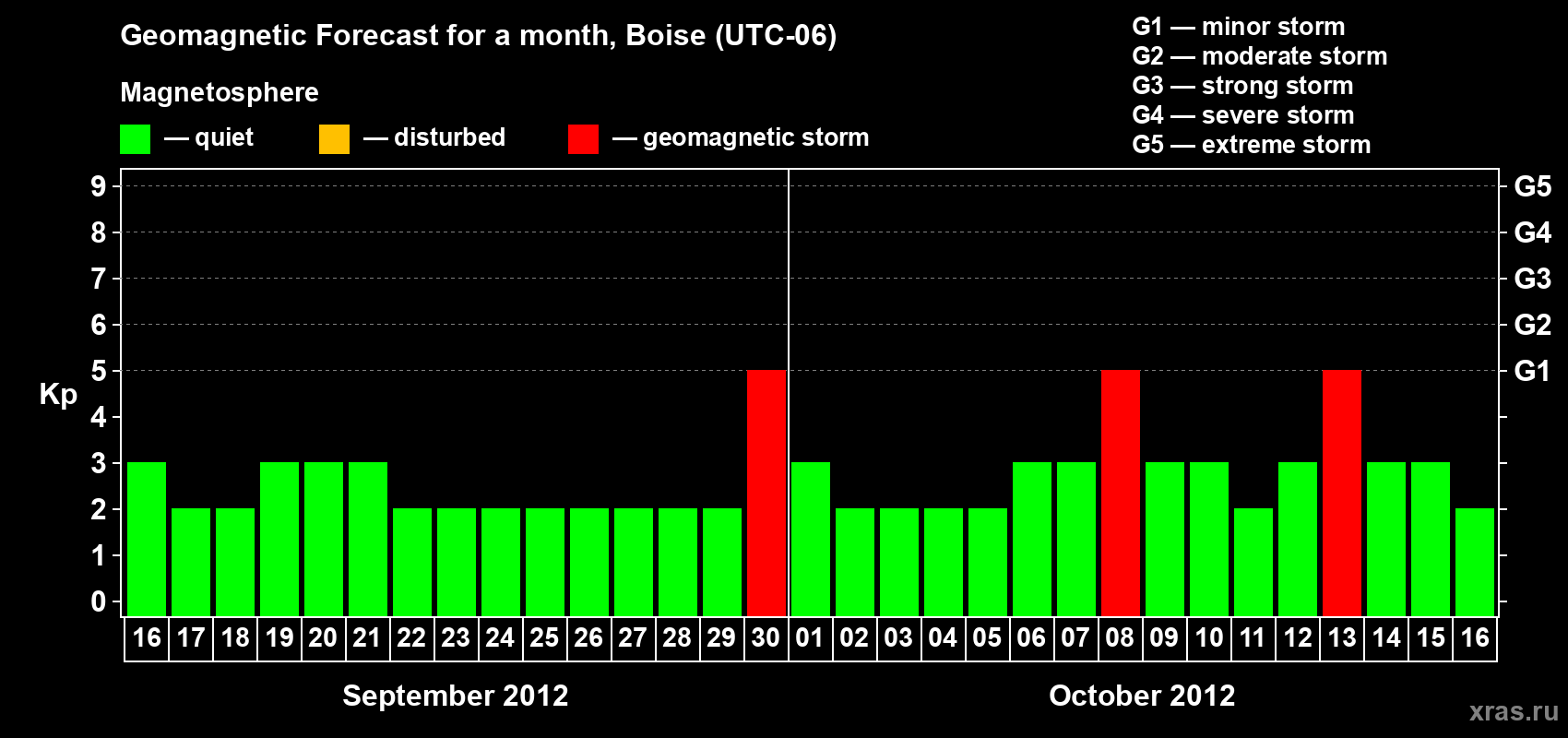 Geomagnetic storm forecast in Boise for Sep 16, 2012