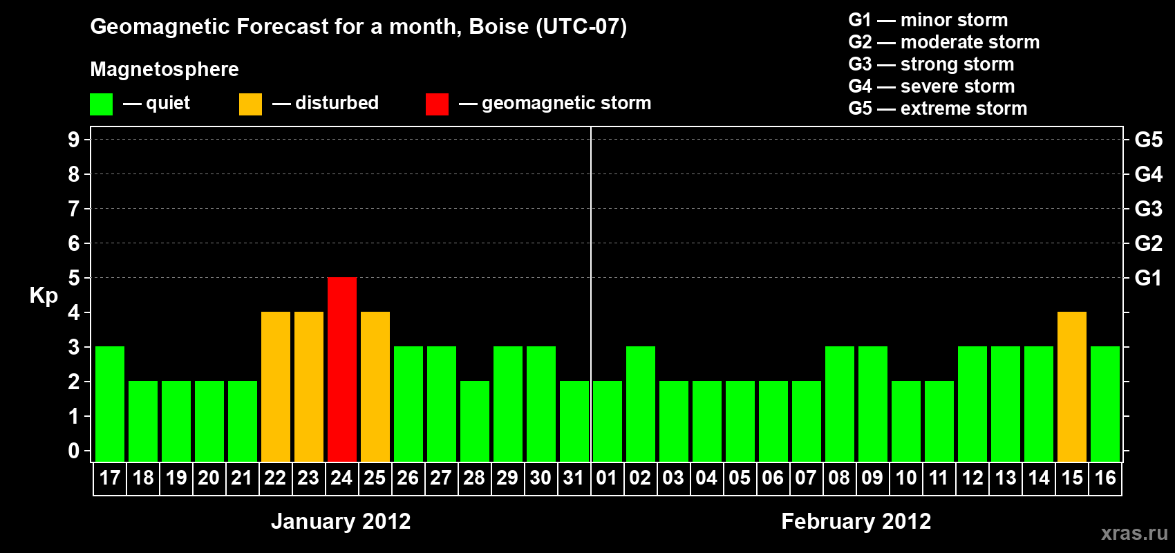 Geomagnetic storm forecast in Boise for Jan 17, 2012