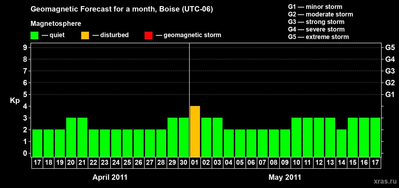 Geomagnetic storm forecast in Boise for Apr 17, 2011