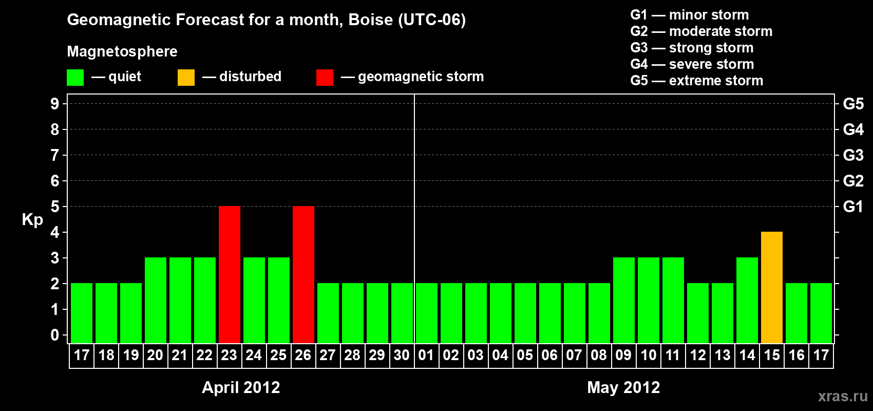 Geomagnetic storm forecast in Boise for Apr 17, 2012