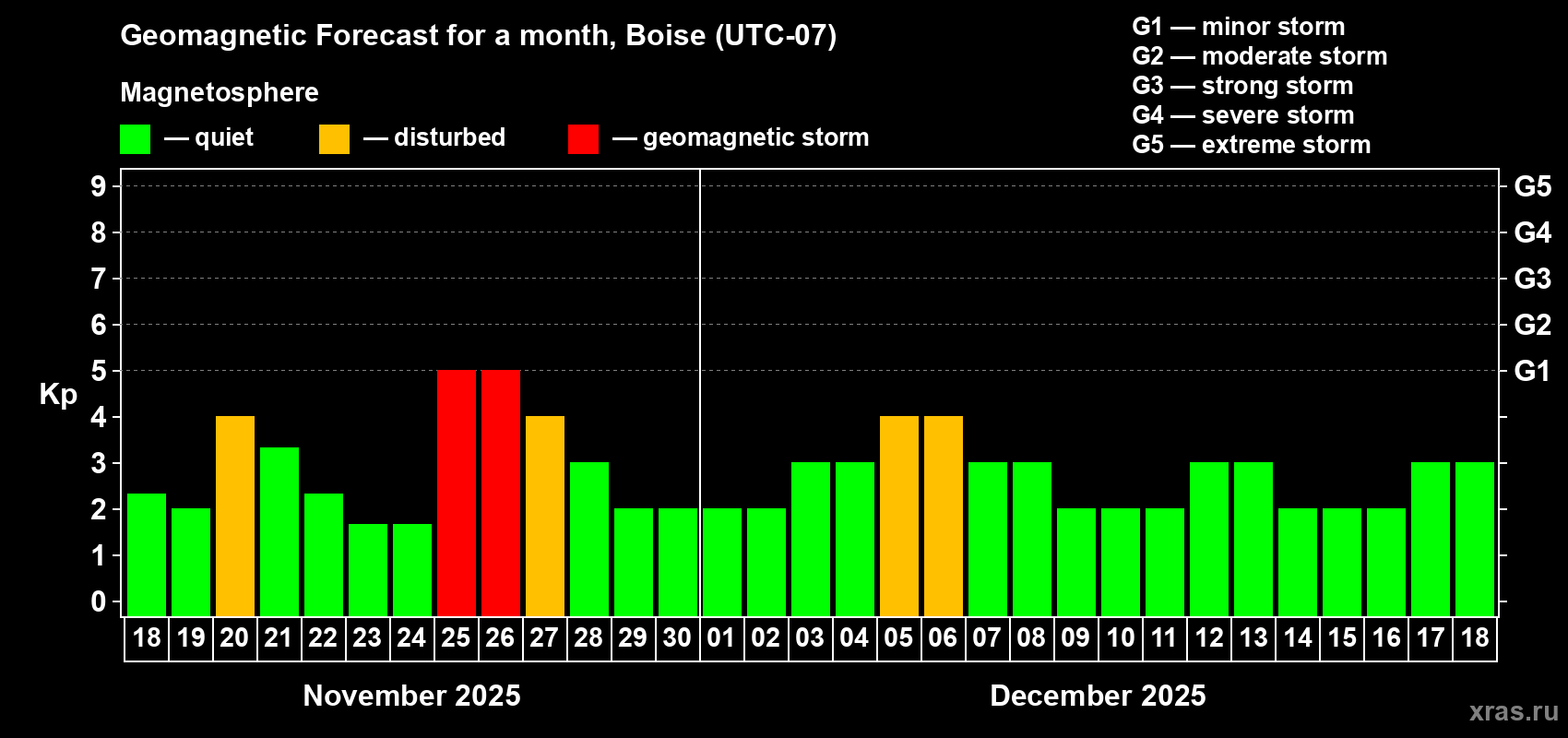 Geomagnetic storm forecast in Boise for Nov 18, 2025