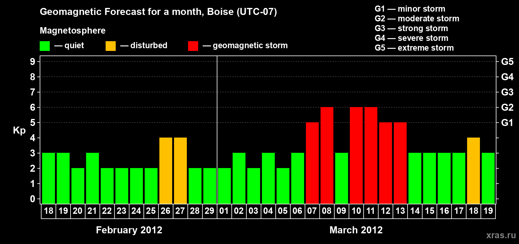 Geomagnetic storm forecast in Boise for Feb 18, 2012