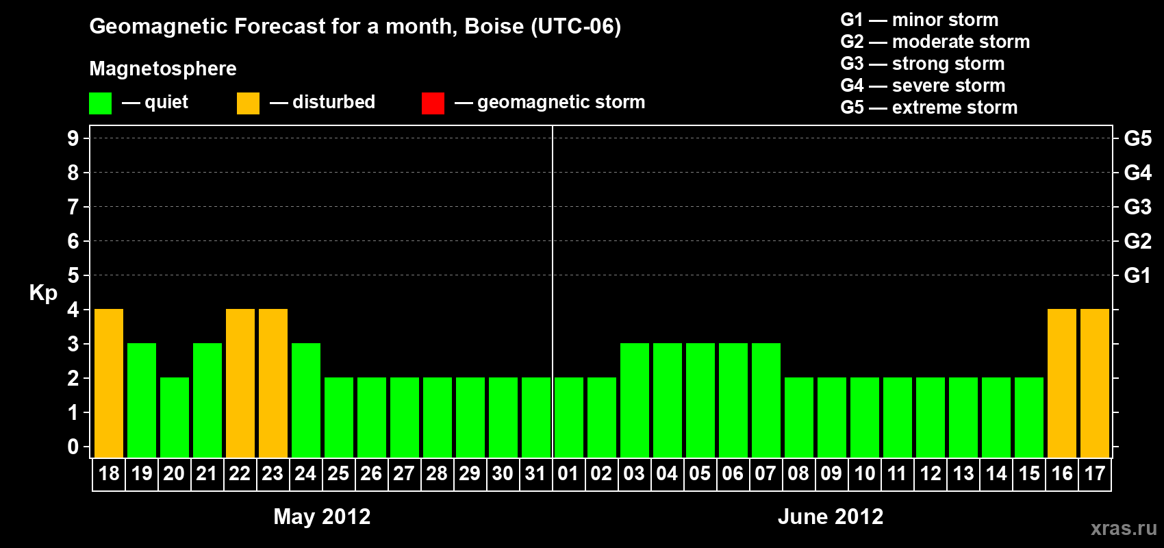 Geomagnetic storm forecast in Boise for May 18, 2012