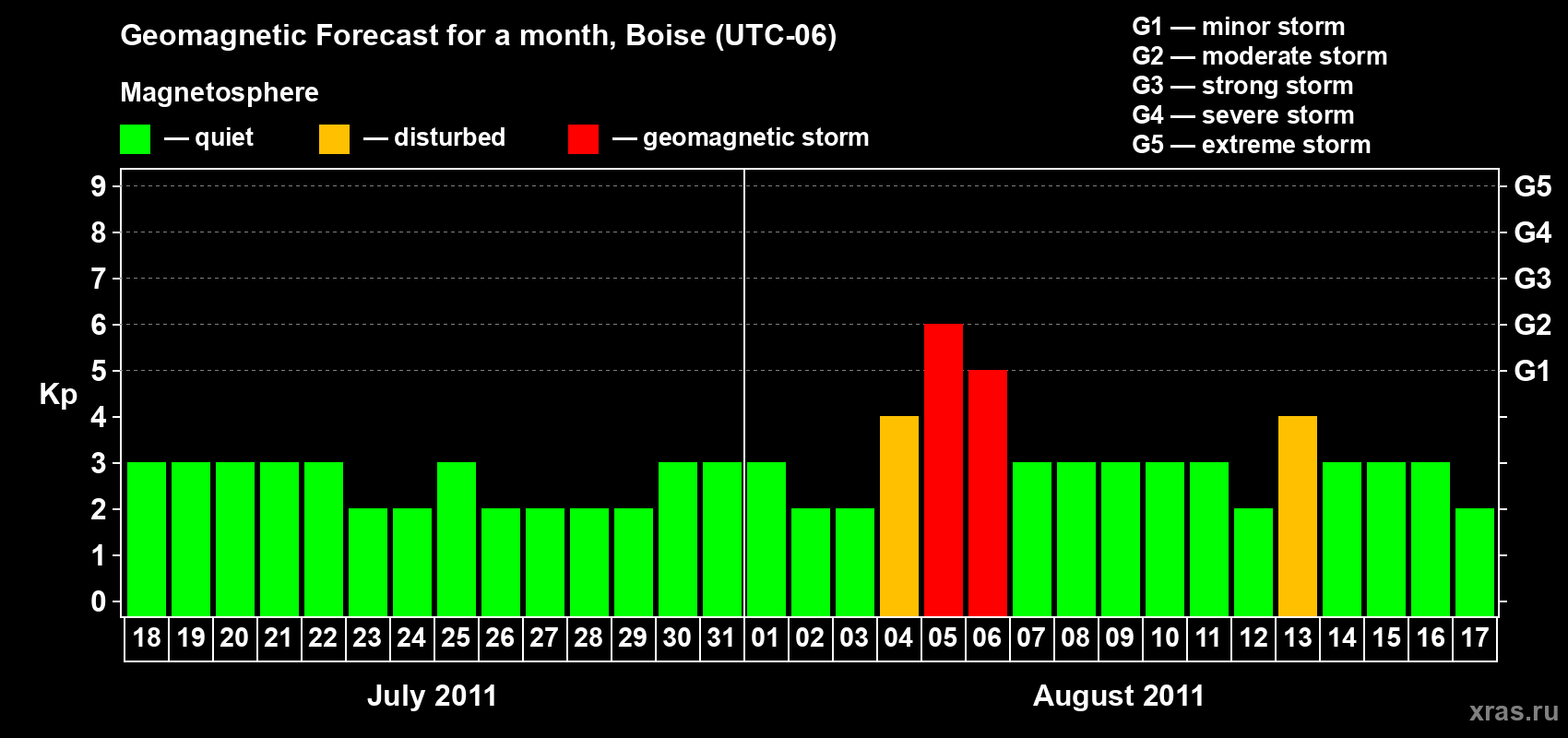 Geomagnetic storm forecast in Boise for Jul 18, 2011