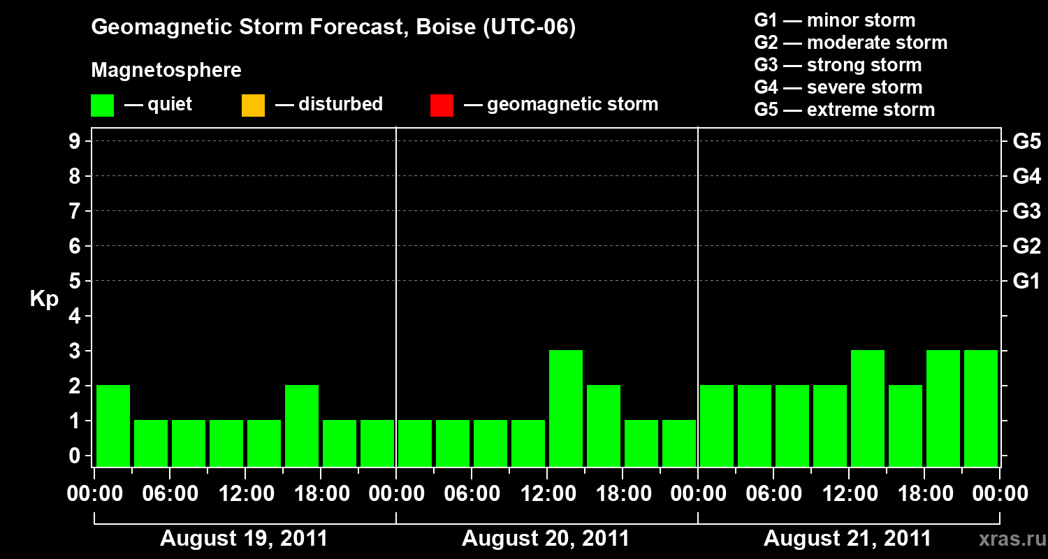 Geomagnetic storm forecast in Boise for Aug 19, 2011