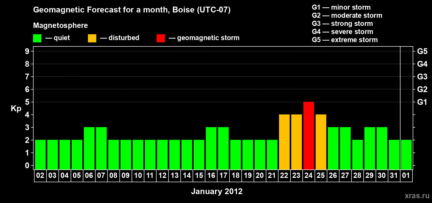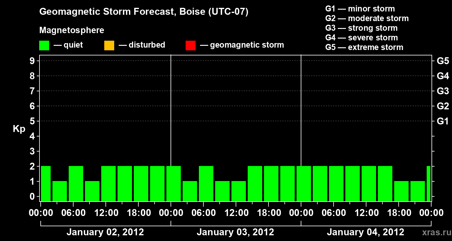 Geomagnetic storm forecast in Boise for Jan 02, 2012