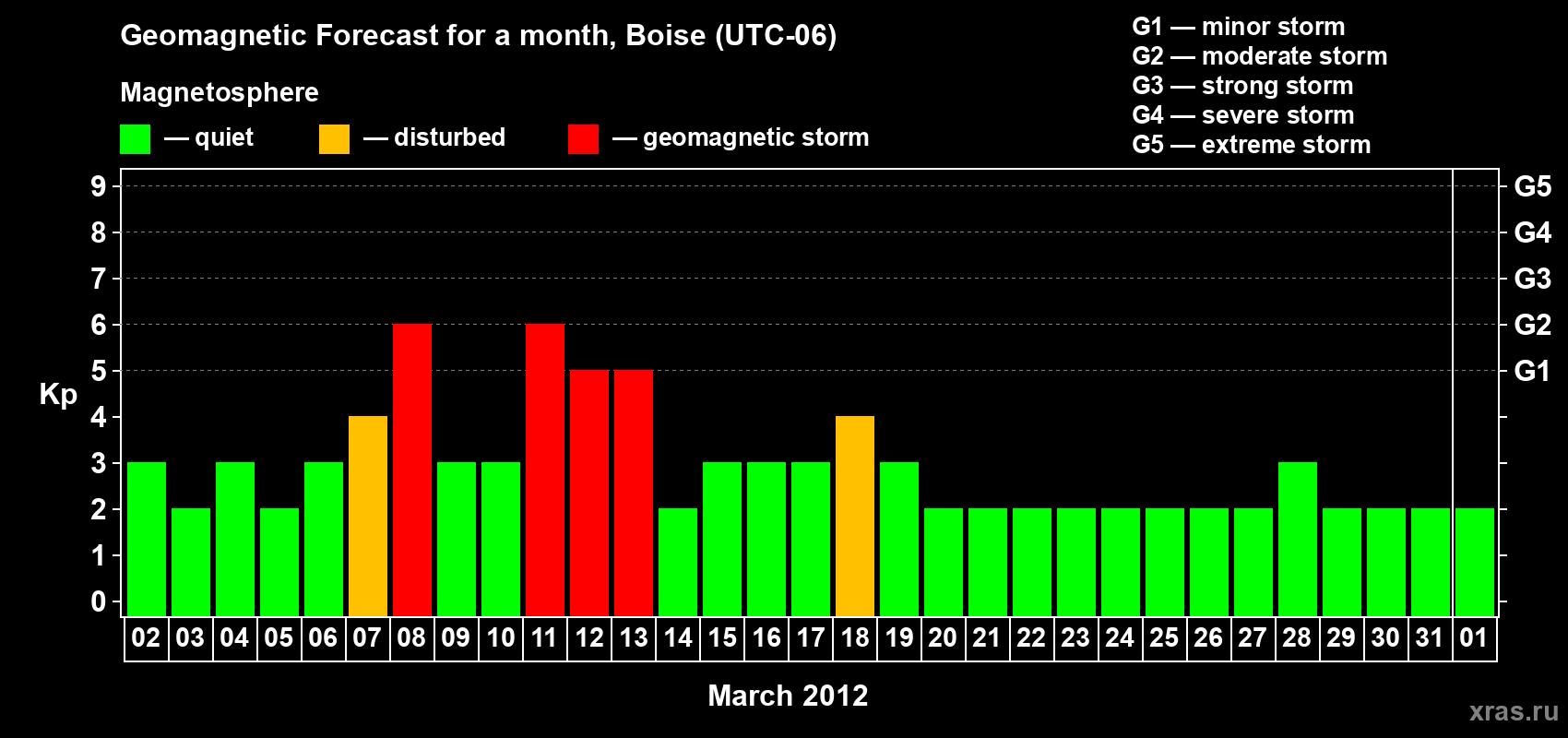 Geomagnetic storm forecast in Boise for Mar 02, 2012