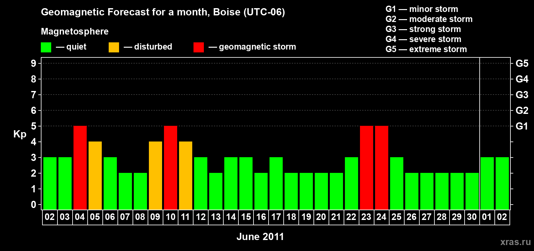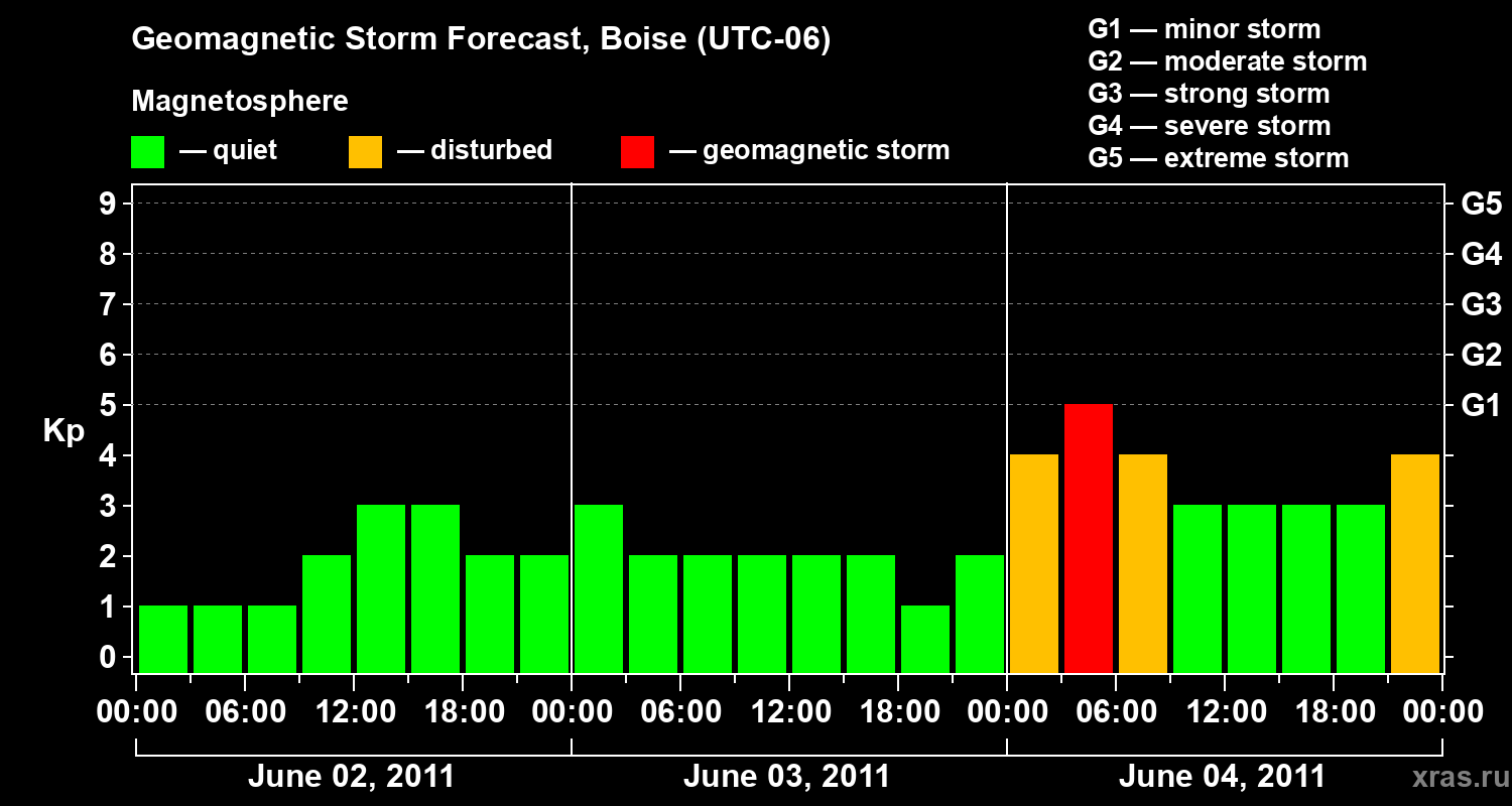Geomagnetic storm forecast in Boise for Jun 02, 2011