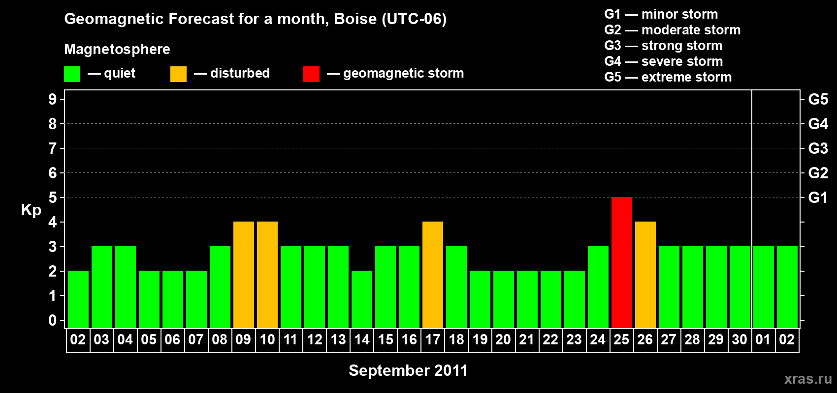 Geomagnetic storm forecast in Boise for Sep 02, 2011