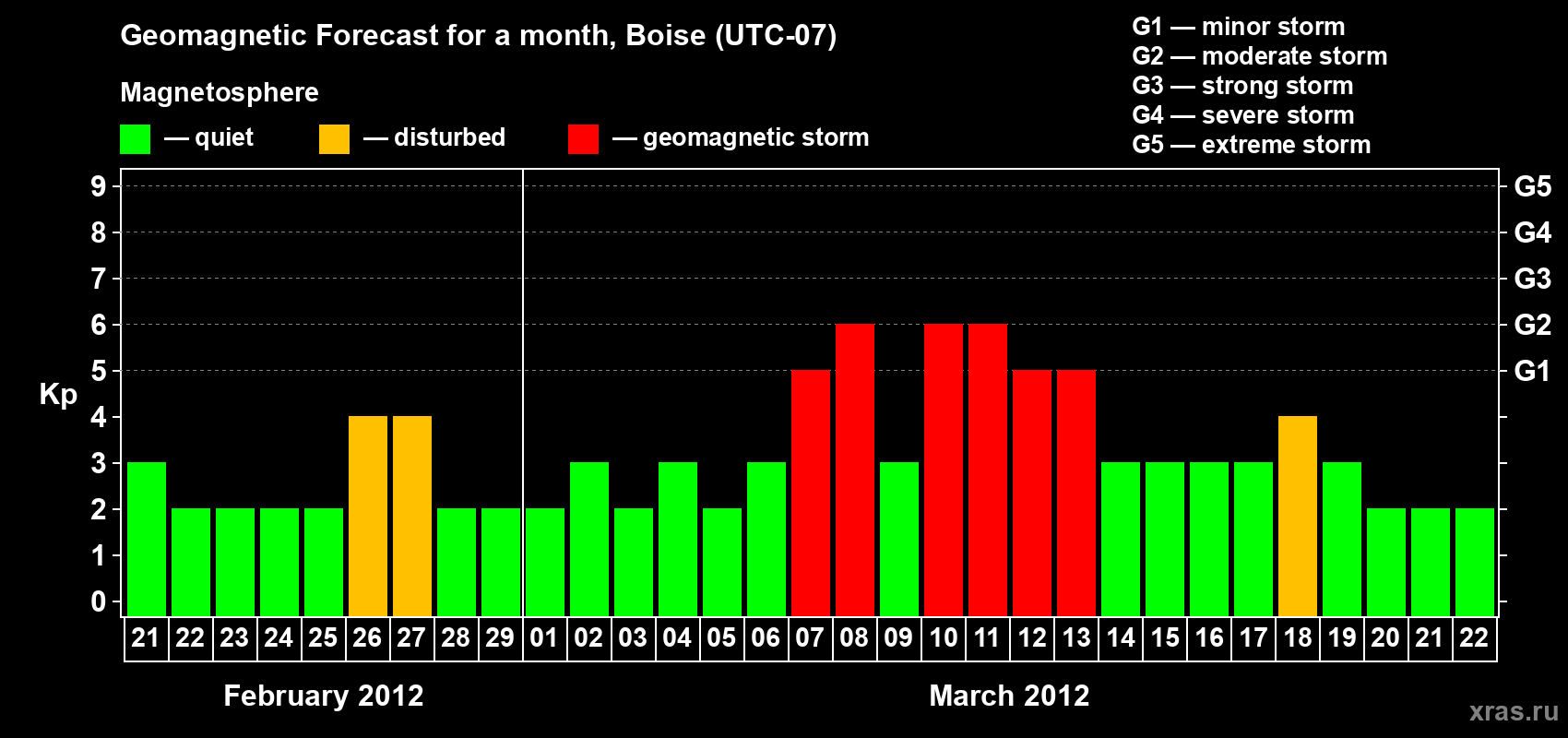 Geomagnetic storm forecast in Boise for Feb 21, 2012