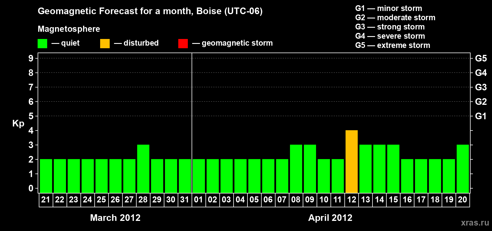 Geomagnetic storm forecast in Boise for Mar 21, 2012