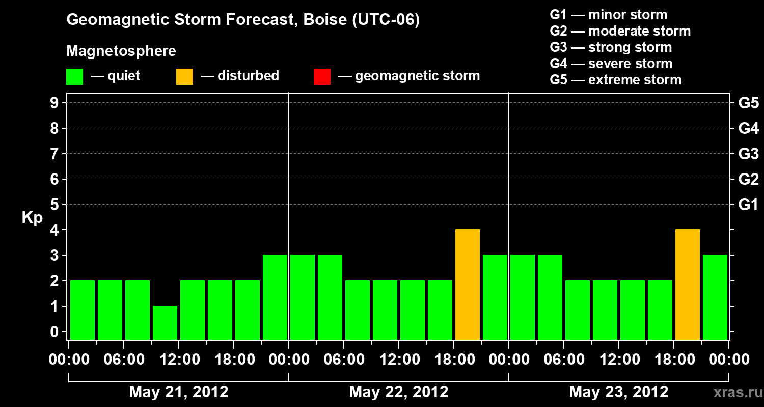Geomagnetic storm forecast in Boise for May 21, 2012