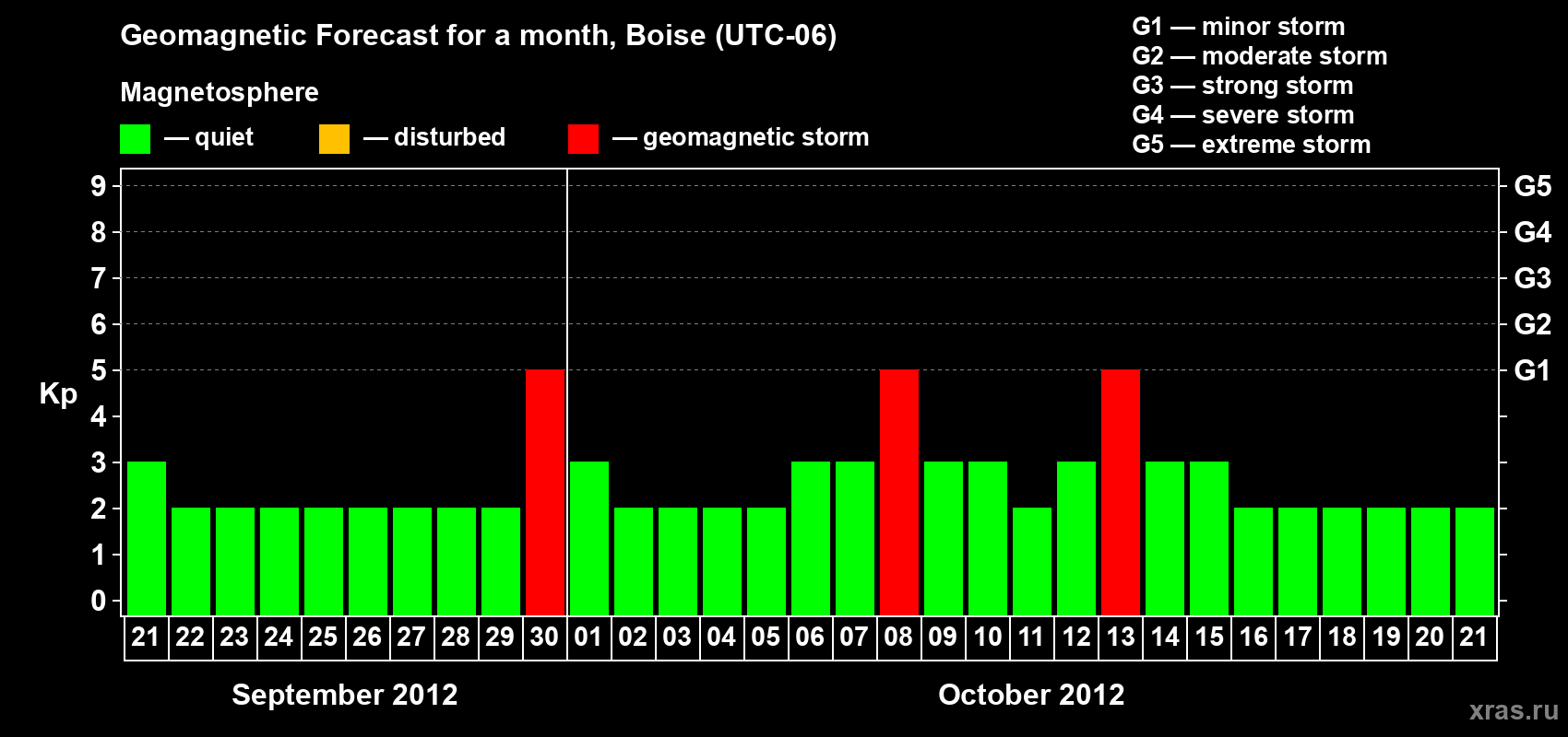 Geomagnetic storm forecast in Boise for Sep 21, 2012