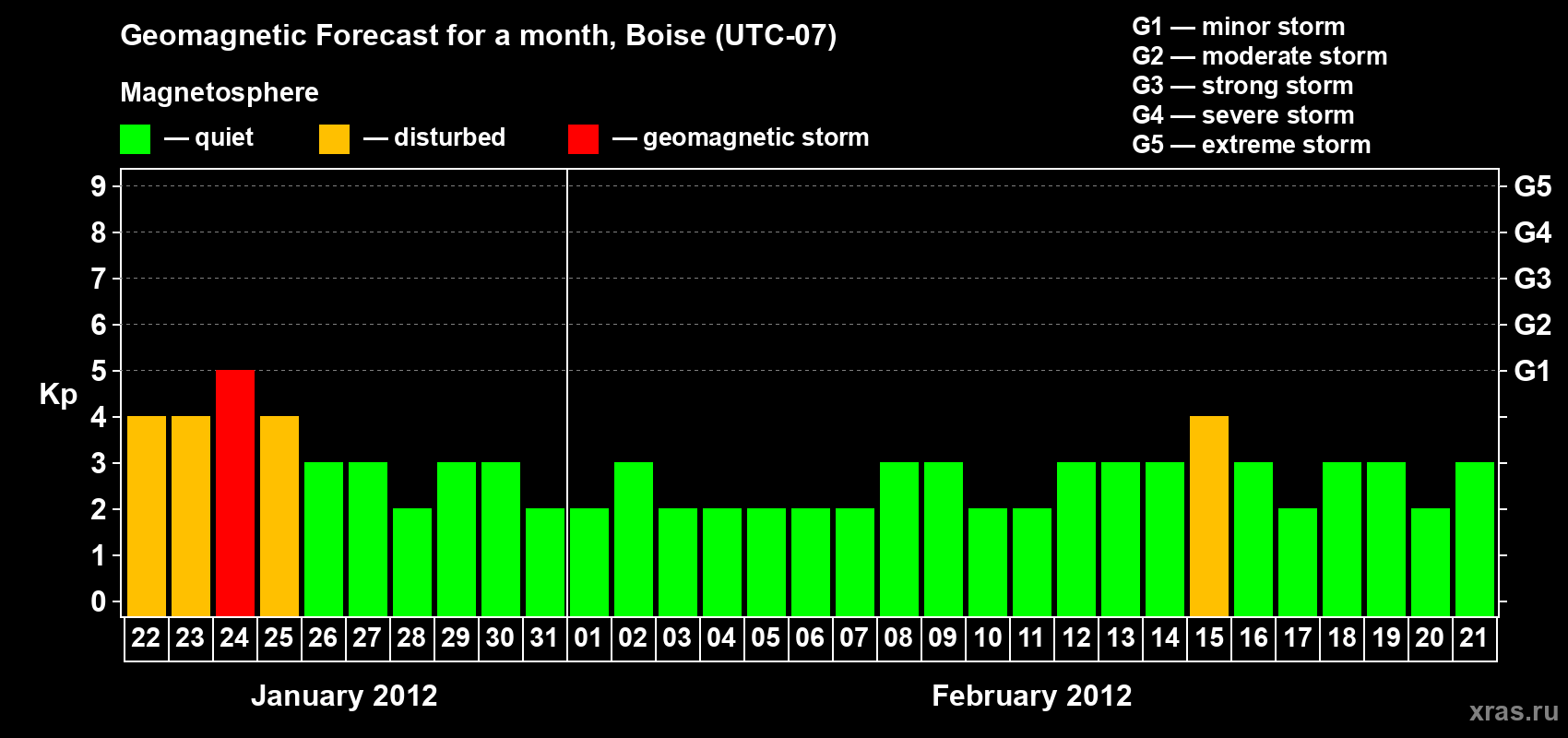 Geomagnetic storm forecast in Boise for Jan 22, 2012