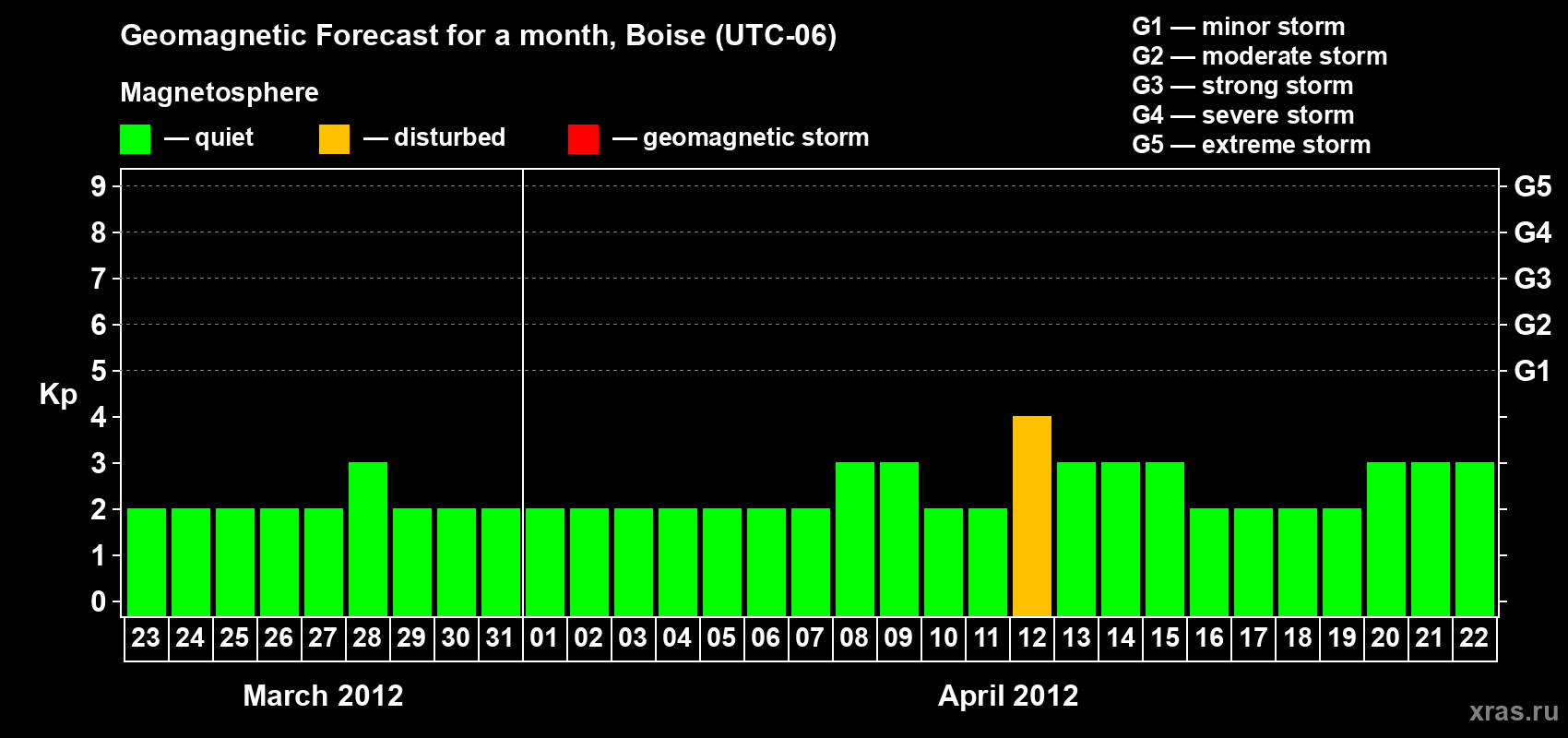 Geomagnetic storm forecast in Boise for Mar 23, 2012