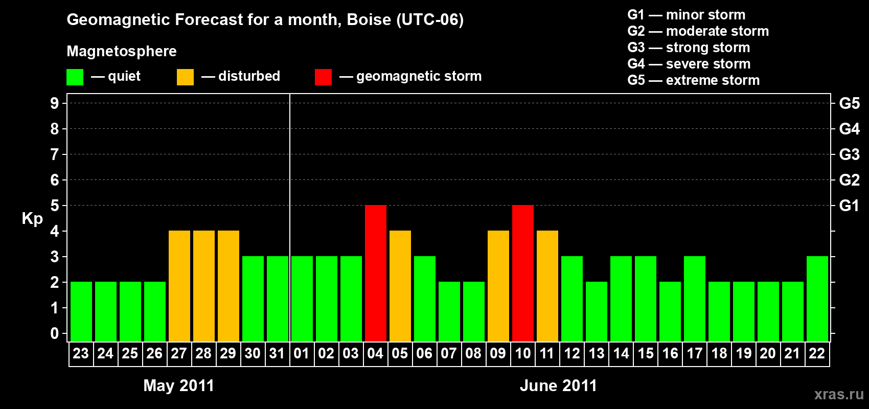 Geomagnetic storm forecast in Boise for May 23, 2011