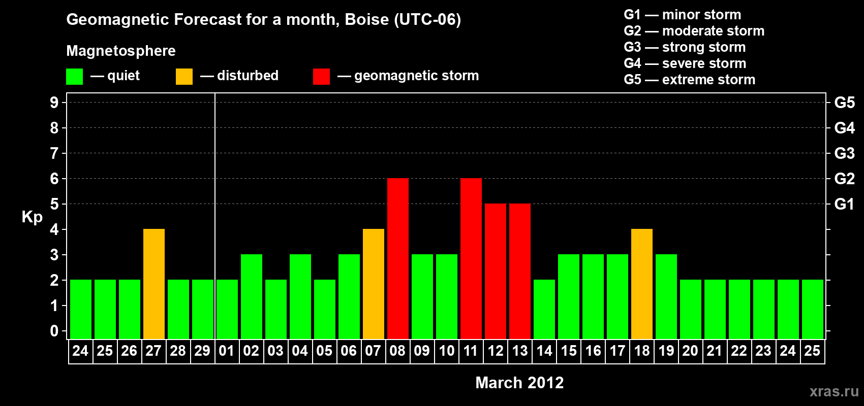 Geomagnetic storm forecast in Boise for Feb 24, 2012