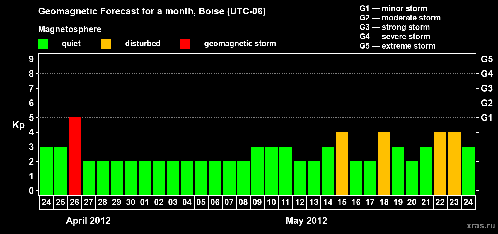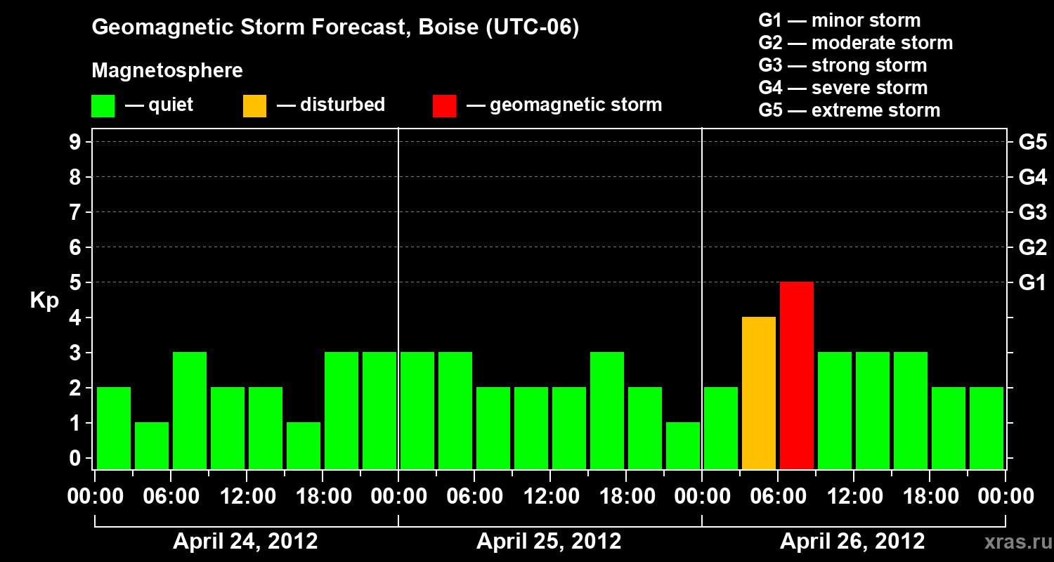 Geomagnetic storm forecast in Boise for Apr 24, 2012