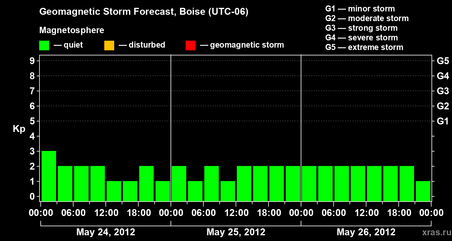 Geomagnetic storm forecast in Boise for May 24, 2012