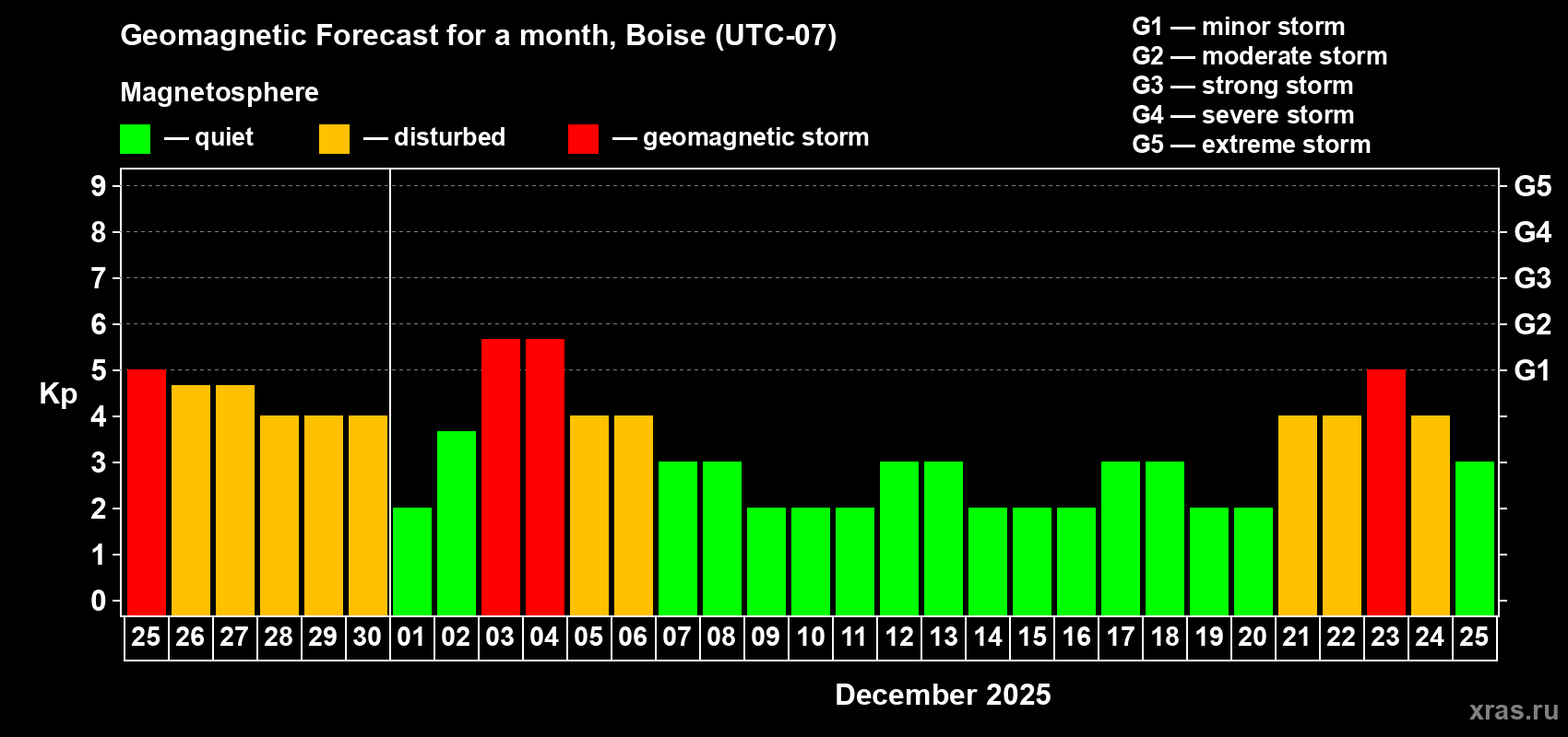 Geomagnetic storm forecast in Boise for Nov 25, 2025