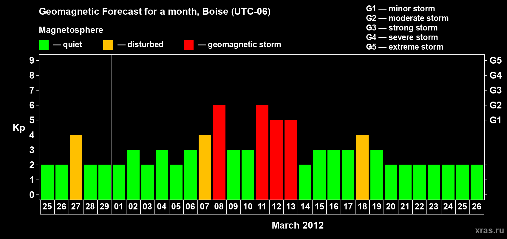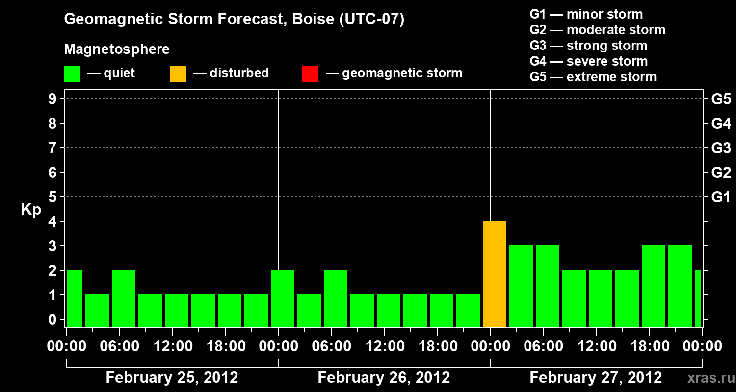 Geomagnetic storm forecast in Boise for Feb 25, 2012