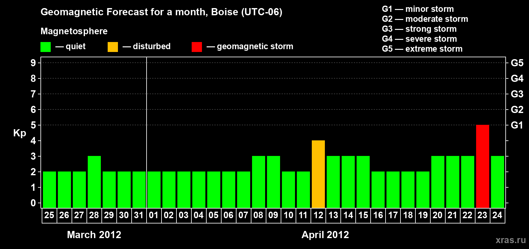 Geomagnetic storm forecast in Boise for Mar 25, 2012