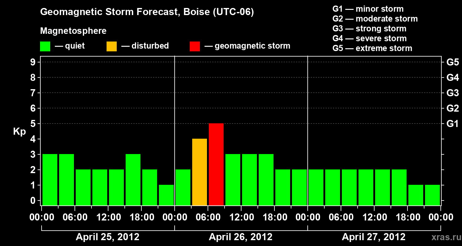 Geomagnetic storm forecast in Boise for Apr 25, 2012