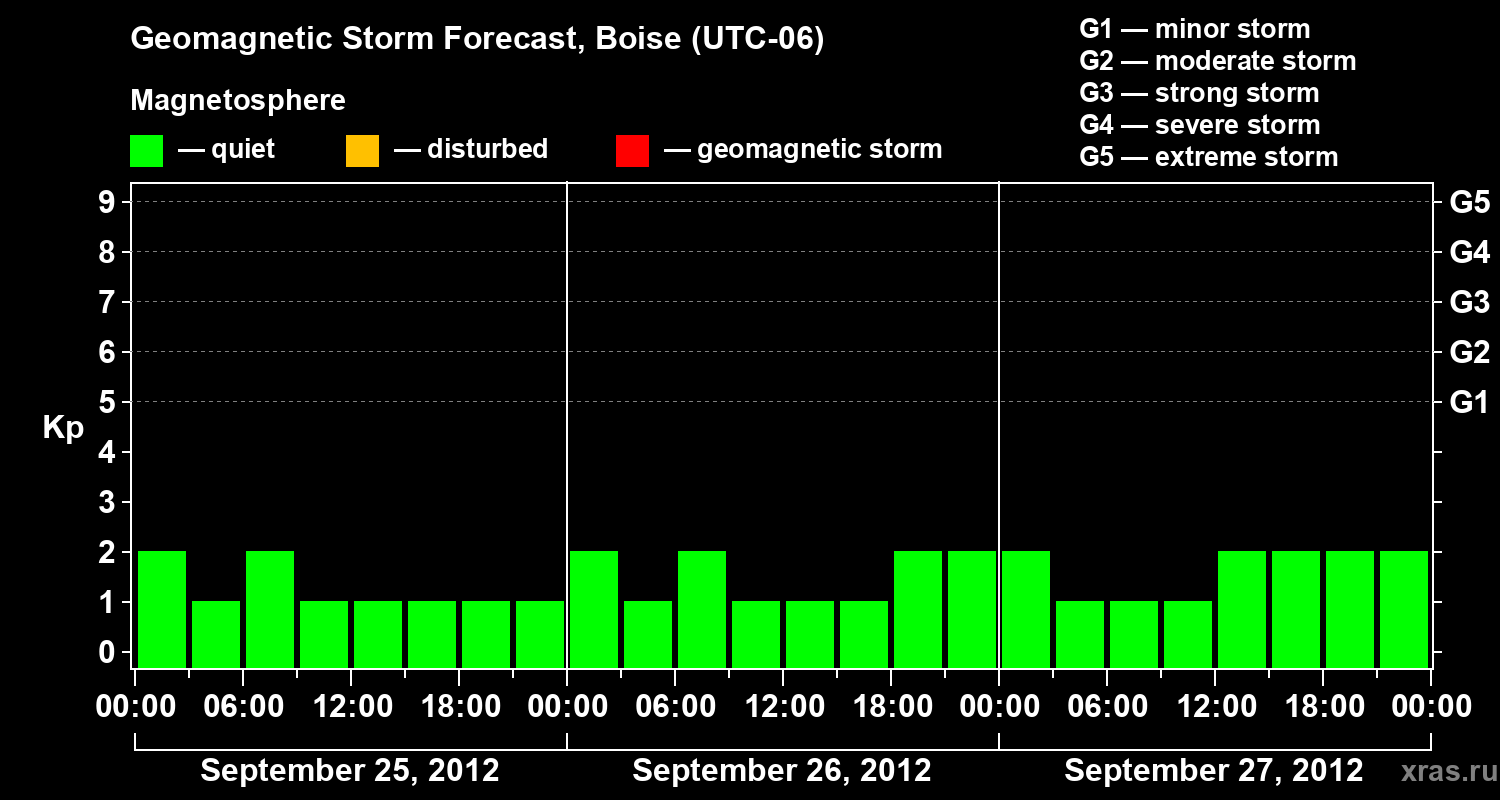 Geomagnetic storm forecast in Boise for Sep 25, 2012