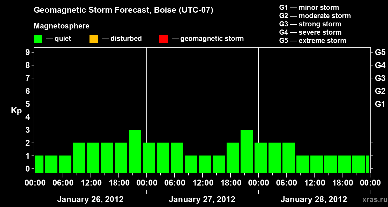 Geomagnetic storm forecast in Boise for Jan 26, 2012