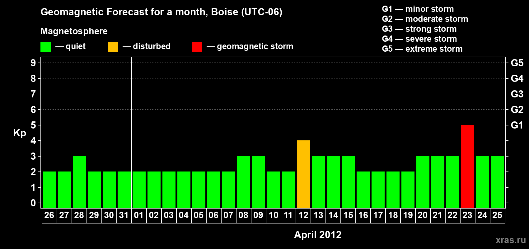 Geomagnetic storm forecast in Boise for Mar 26, 2012