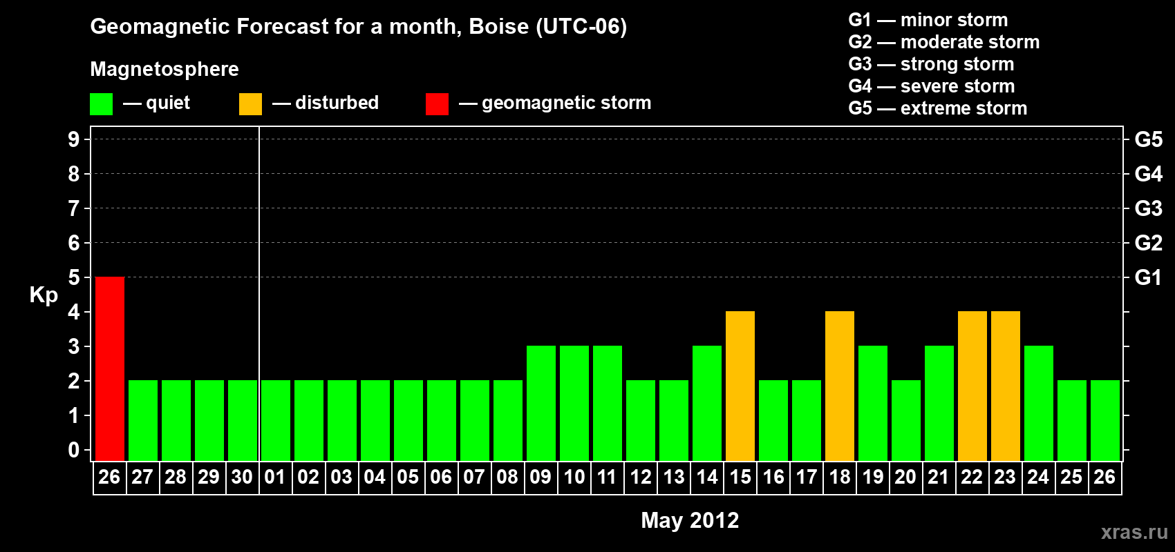 Geomagnetic storm forecast in Boise for Apr 26, 2012