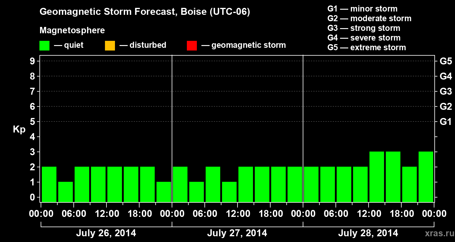Geomagnetic storm forecast in Boise for Jul 26, 2014