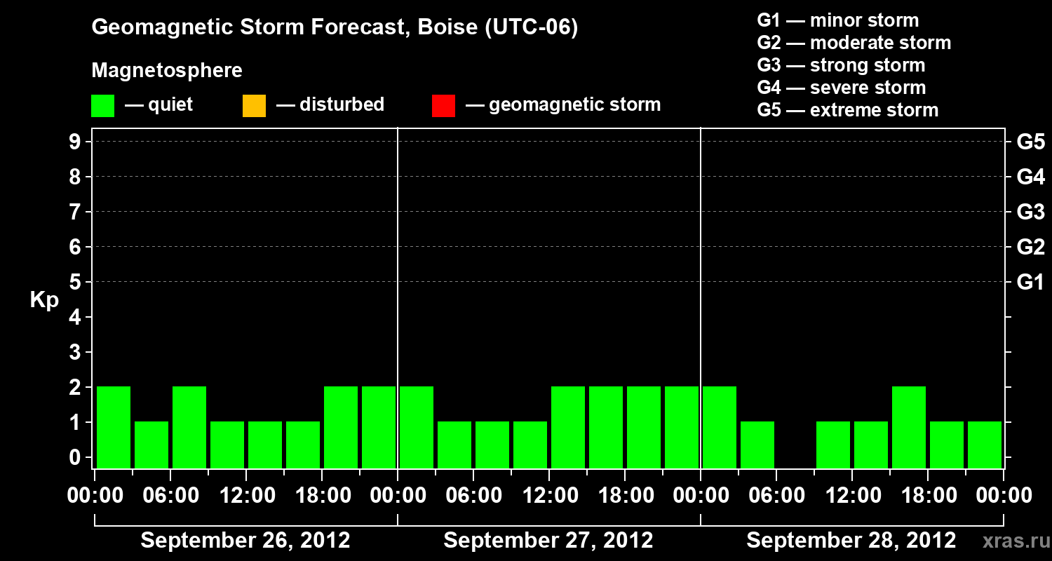 Geomagnetic storm forecast in Boise for Sep 26, 2012