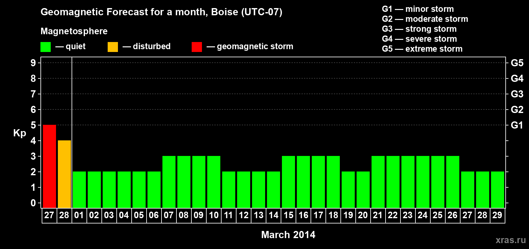 Geomagnetic storm forecast in Boise for Feb 27, 2014