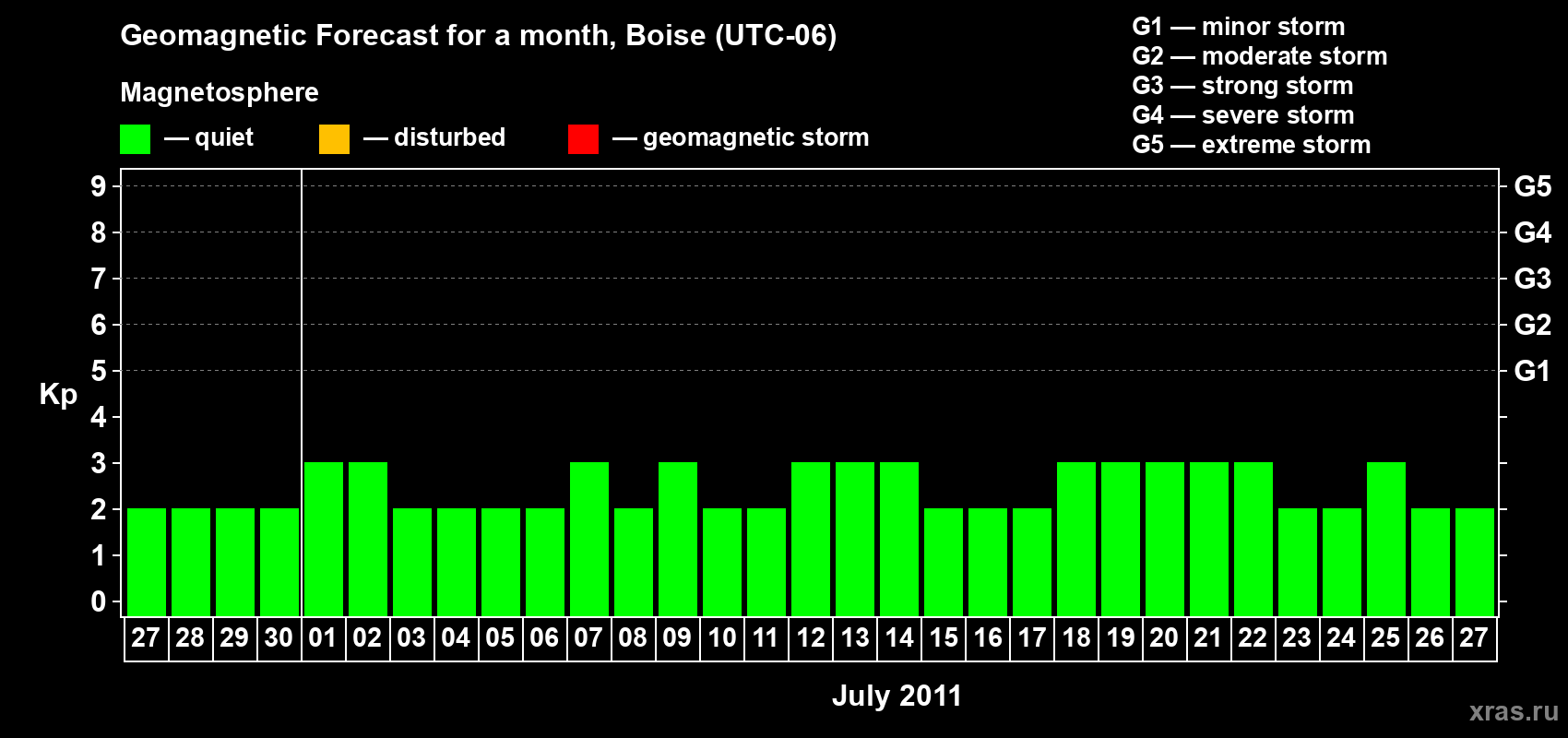 Geomagnetic storm forecast in Boise for Jun 27, 2011
