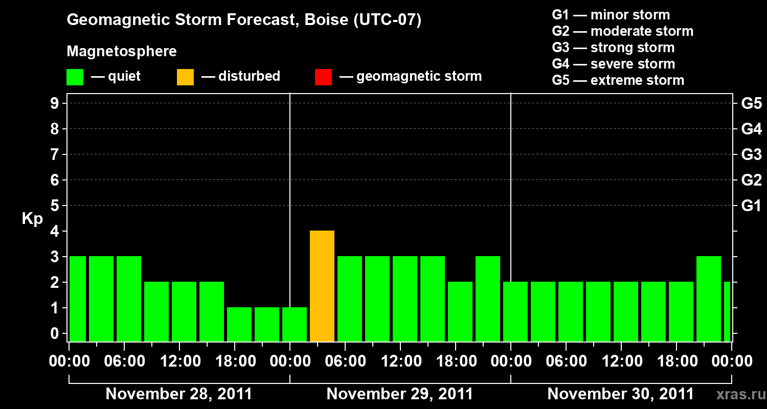 Geomagnetic storm forecast in Boise for Nov 28, 2011