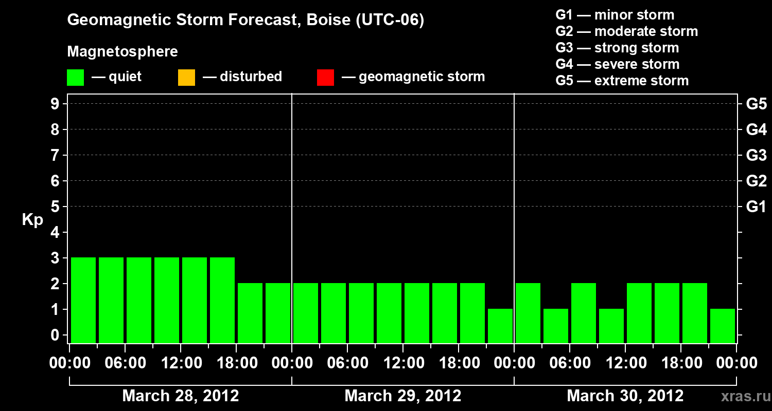 Geomagnetic storm forecast in Boise for Mar 28, 2012