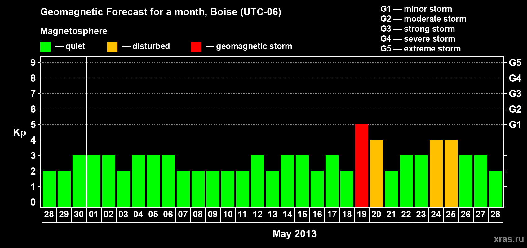 Geomagnetic storm forecast in Boise for Apr 28, 2013
