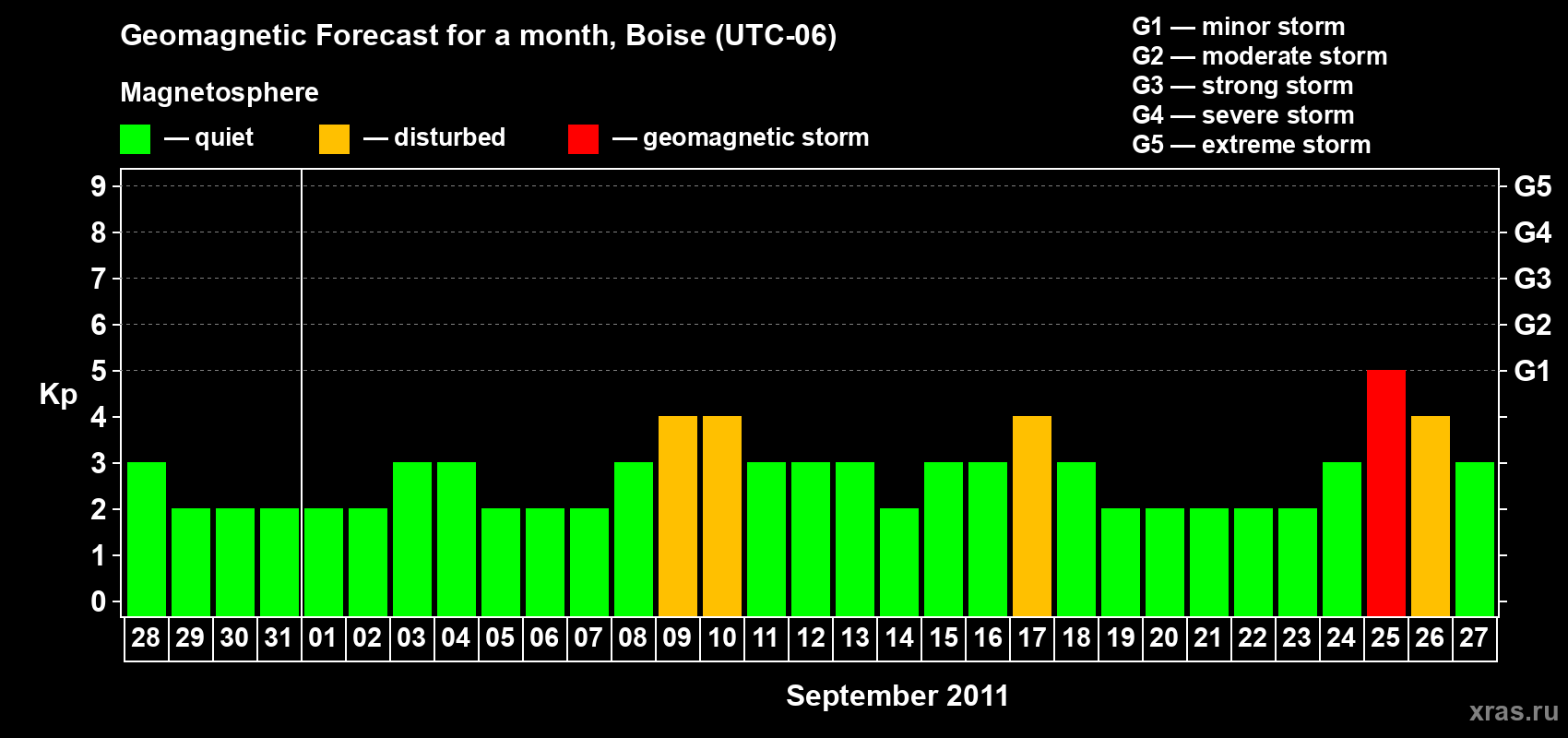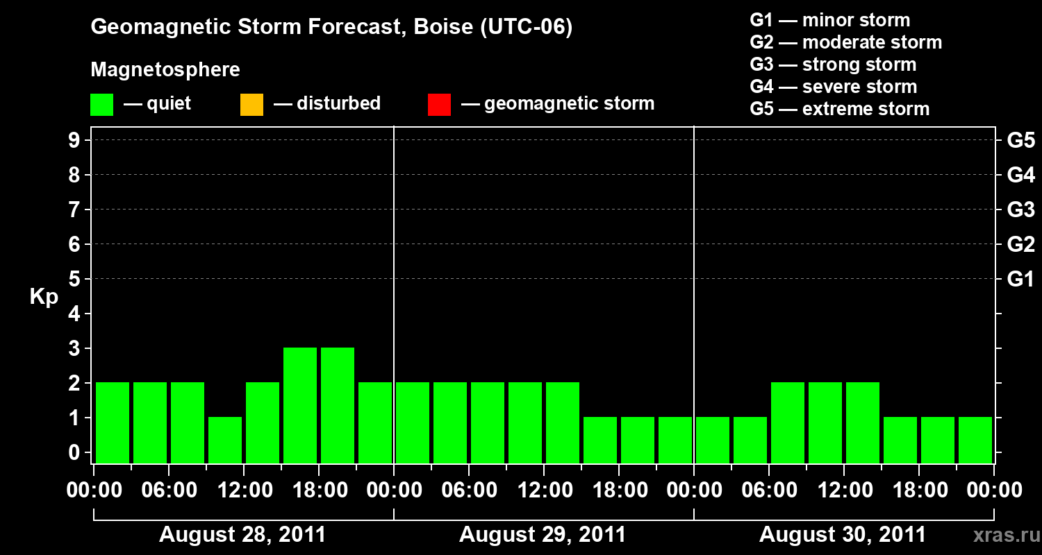 Geomagnetic storm forecast in Boise for Aug 28, 2011