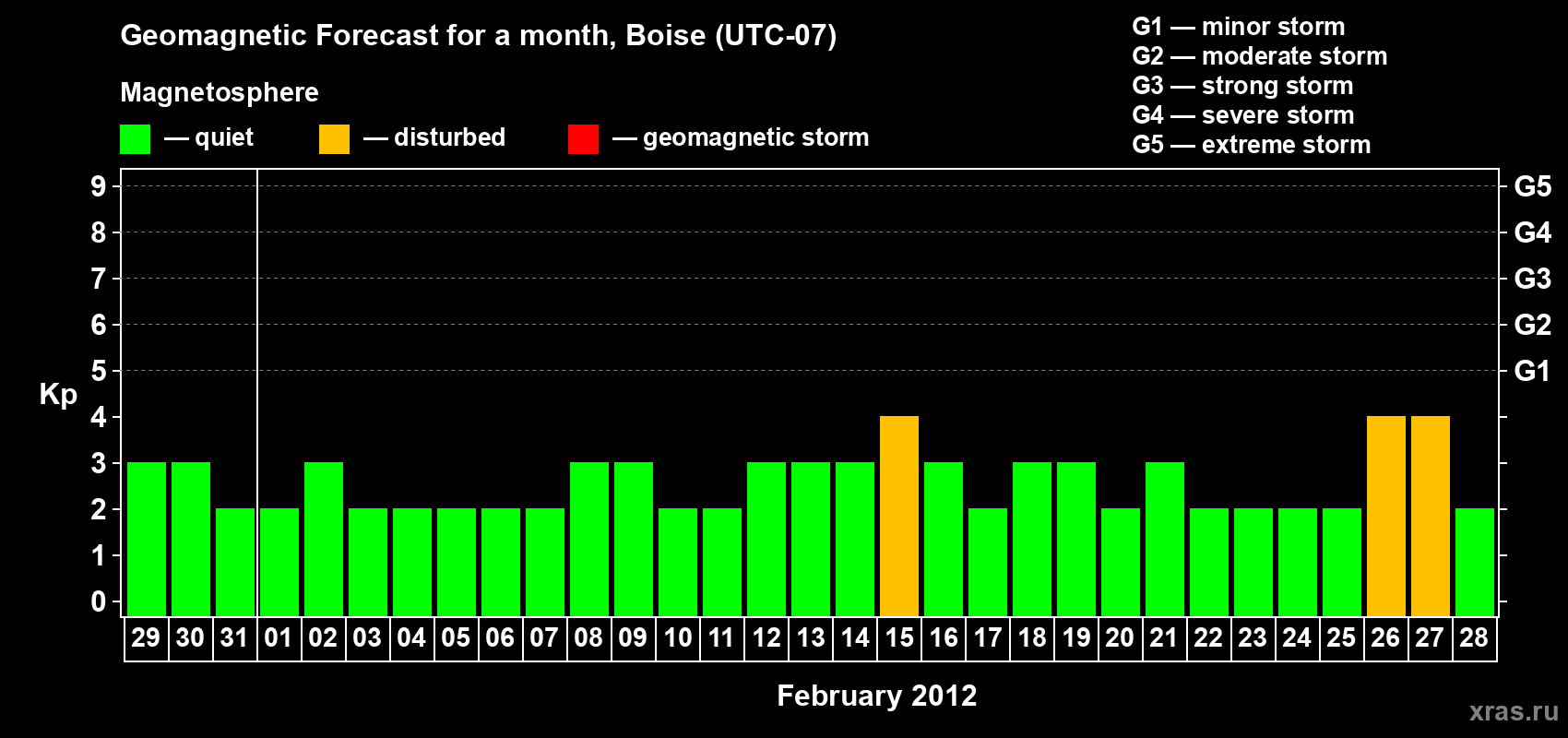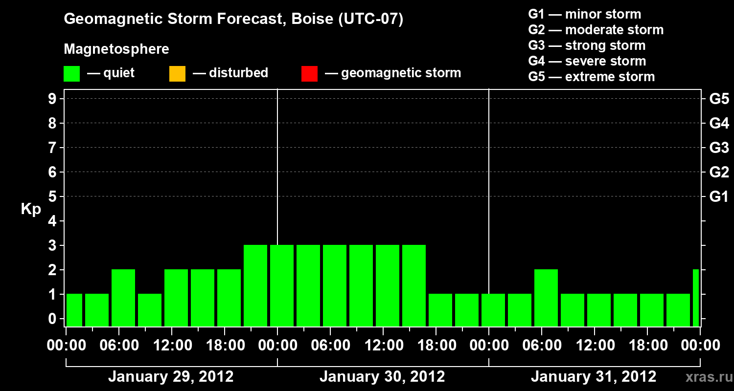 Geomagnetic storm forecast in Boise for Jan 29, 2012